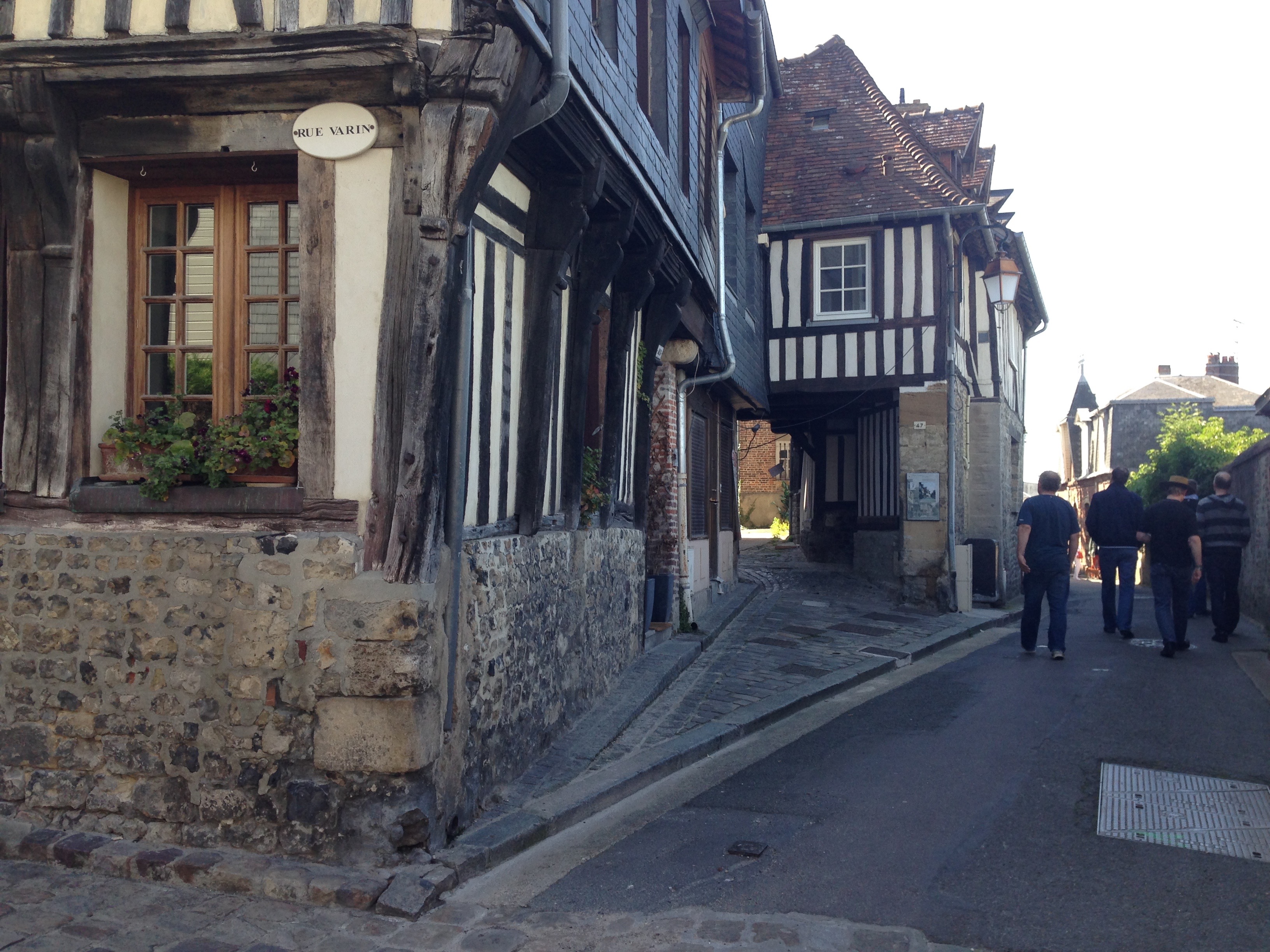 The journey continues and they arrive at the Channel Tunnel Port. It was a swift crossing in the tunnel, only taking 25 mins. On the tunnel train, Chris is practising his French and recalls some schoolboy stuff. "If anyone asks you how old you are, the answer is 'J'ai onze ans'" he announces proudly. Stuart mis-hears, but then folds up on realising that means 'I am 11'. Appropriate for the time but points out it is an adjustable statement... From the tunnel it's then a drive along the A26 to Agincourt for a nosy round, it being an important historical battle site. The Group mill about, miss the Visitor Centre and the battlefield somehow. After that, they are coming out of Azincourt and a little lost. Mark is map reading and looking around at his surroundings. I think this place is Carrefour he says (without thinking), as he had seen a sign which was clearly advertising the famous supermarket chain. Having inspected the 'monument' they then leave Agincourt for good and head for Honfleur, their base for the holiday.