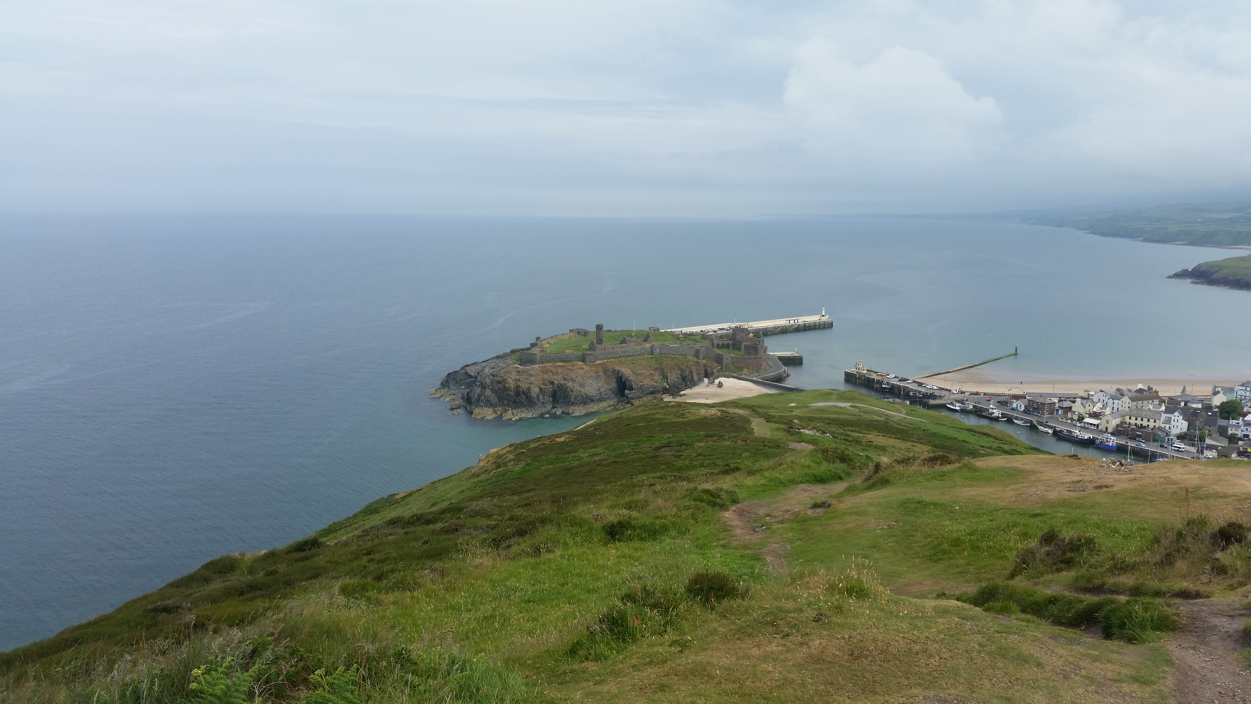 Monday and the start of a new week. The Arrowgroup set off with the intention of going to Laxey. However the inclement weather forced a change of plan and so a very circuitous route to Peel was taken instead via some of the TT roads. They walked round the harbour a bit and and looked at some castle battlements. Walked up a hill and back down again, though that did afford views of Peel and the harbour and environs therein. It was lunch at the Peverill which consisted of a cheese toastie and a coke. Better than nothing. Then they pushed on to Port Erin for an Ice Cream and brief look with the Calf of Man thrown in for some general millage in the Arrow finest tradition. There's not much rest though as Castleton was invaded for shopping and brief look at the Castle. Another one.